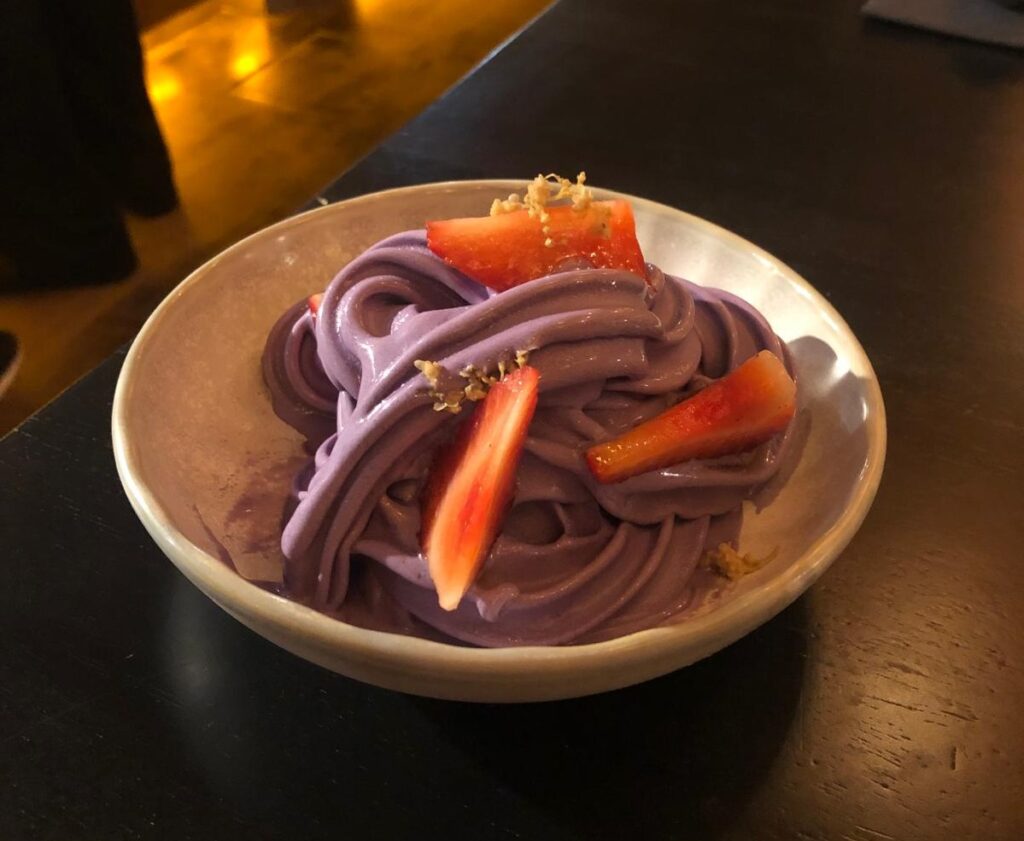 The kitchen is home to a bespoke Smokin’ Soul grill and it did a great job on the chicken, which was juicy, delicious and perfectly charred. By that point we were very full, but we managed to squeeze in an ube soft serve – ube is a kind of yam used to make ice cream in the Philippines. It’s bright purple and was a fun end to the meal.