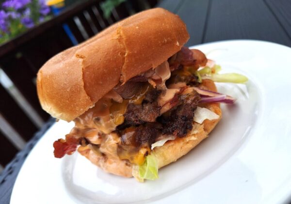 The term “Bog Standard” has long meant boringly ordinary or average. It’s a bold move to take on these associations and try to turn them on their head. To do this, Bog Standard Burgers are making a global trend local. They specialise in smashburgers, hot stuff in the burger world. Originating in the US, they are a way of making burgers with thin, flat and crispy patties, squashed on the grill to create lacy, umami-rich edges. These are layered (usually two) in a soft bun with melted cheese, wafer thin fried onions and topped as you like.