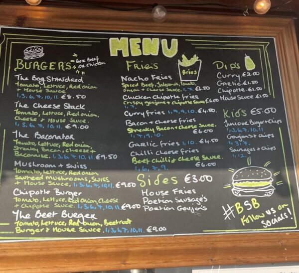 Lisa says, “we had the child and then the question was, what will we do? We’ve done this kind of thing for so many people, it’s time to go out for ourselves and see what we can do. If we don’t do it now we’ll never do it”. They landed on the name Bog Standard Burgers quite easily. Derek says, “We’re living on the bog, I grew up spending summers on the bog. We decided that we wanted a new twist on the term bog standard”.